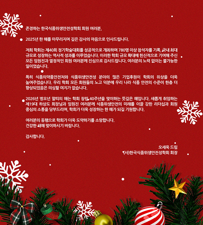 2025년 『제40회 한국식품위생안전성학회 정기학술대회』 개최 및 사전등록 일정 안내 (~10/14(화)까지)